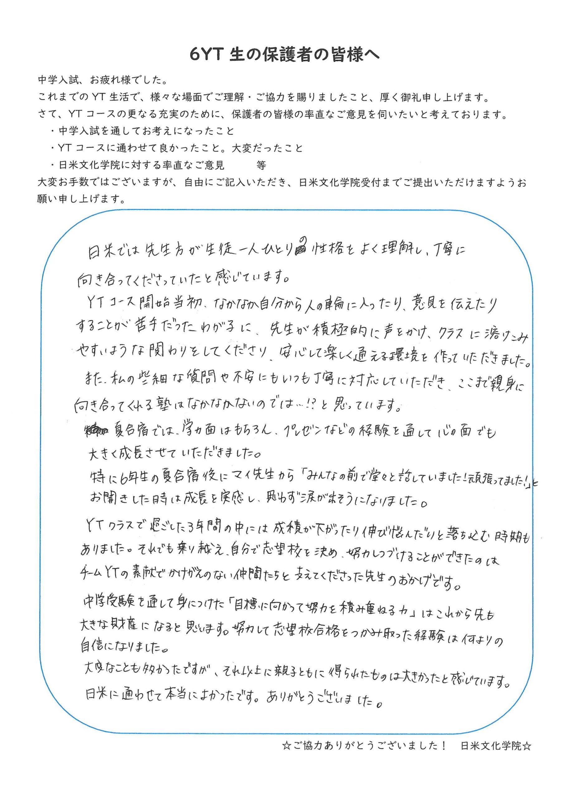 生徒・保護者の声